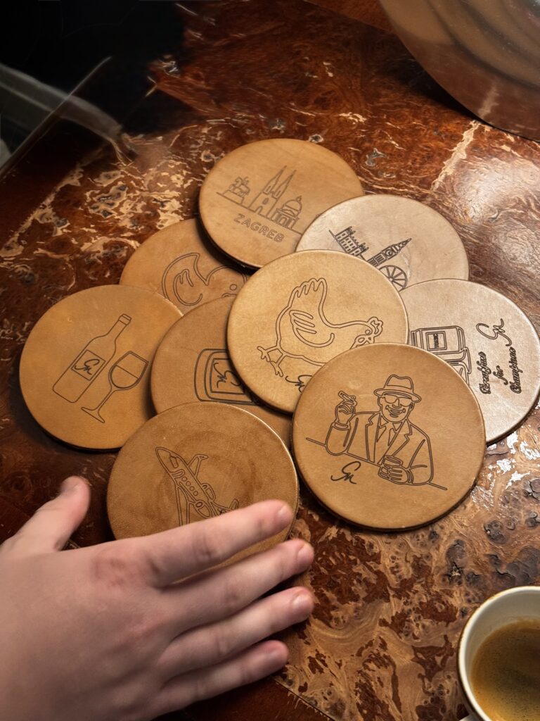 GM-Leathercraft wählt die symbolträchtige Fläche des Untersetzers – jenes kleine, oft unbeachtete Objekt, das im Alltag den Raum für unsere Genüsse schützt. Er steht stellvertretend für die Begegnung von Funktion und gesellschaftlichem Ritual, ein stummer Zeuge gemeinsamer Momente. Doch indem er über das rein Praktische hinaus künstlerisch gestaltet wird, eröffnet sich der Raum für eine tiefere Betrachtung: In einer Epoche, die vom schnellen Konsum geprägt ist, lädt dieses Werk dazu ein, den flüchtigen Nutzen in den Hintergrund zu drängen und das Augenmerk auf das Wesentliche zu lenken – auf die Kunst, das Schöne und die feinen, oft übersehenen Dimensionen des Lebens.