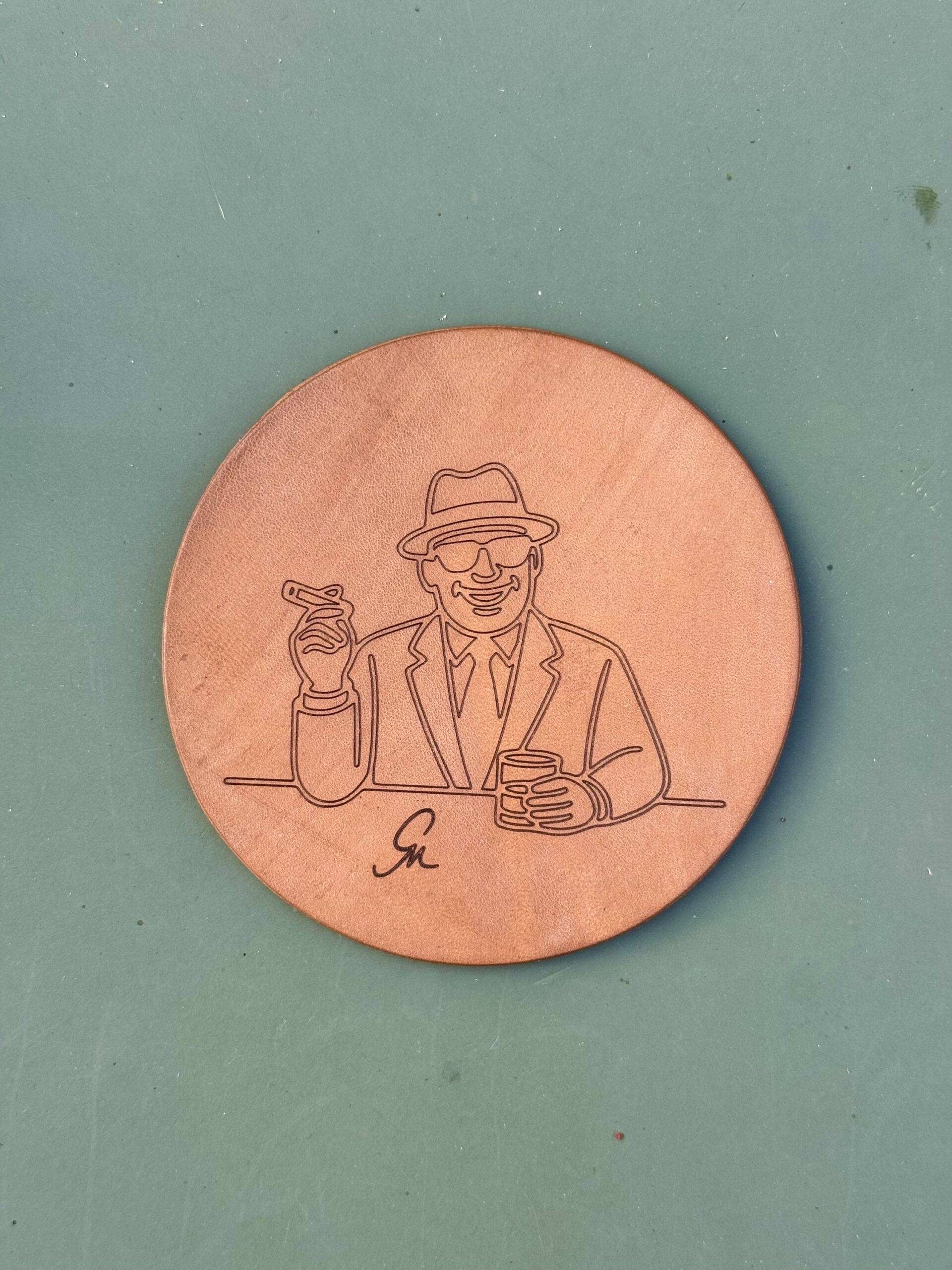 Mit lässigem Grinsen, Zigarre in der einen und Glas in der anderen Hand wacht der „Capo“ über deine Bar – oder zumindest über deinen Tisch. Gefertigt aus robustem, pflanzlich gegerbtem Leder, hält er jeden Tropfen aus… und merkt sich alles.